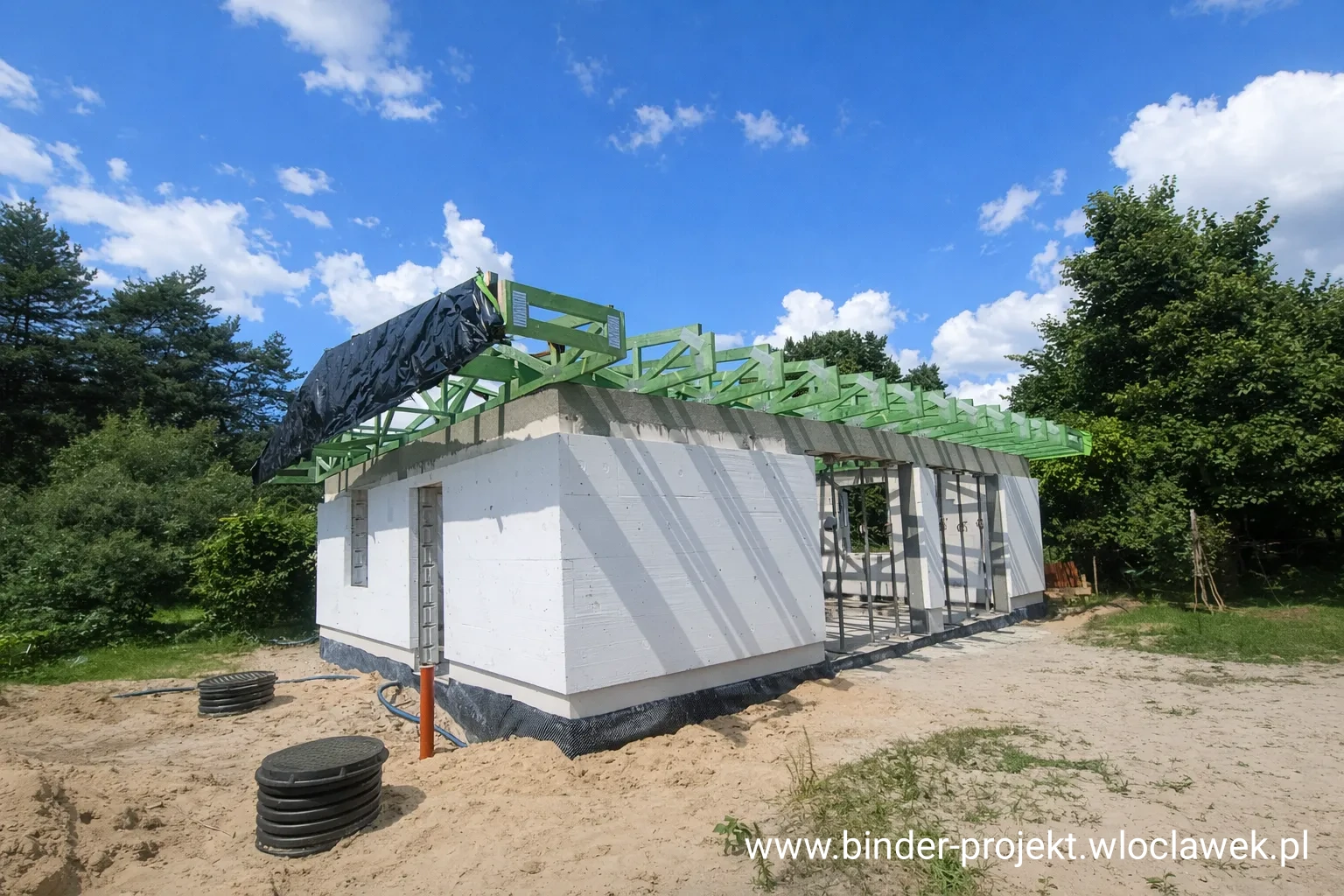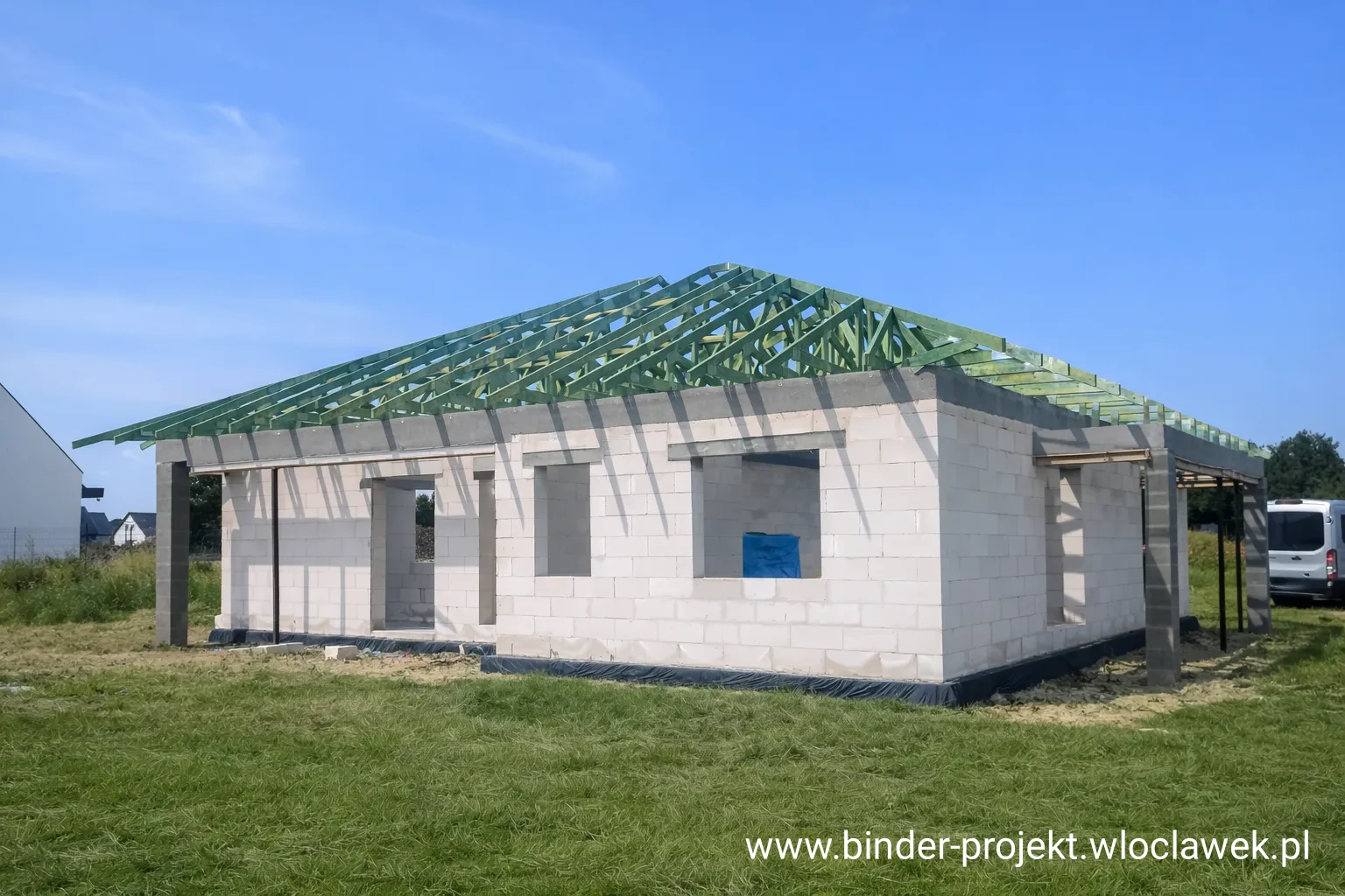 Montujemy wiązary na Twojej budowie w 1-2 dni (w zależności od skomplikowanej geometrii dachu). Dach gotowy do krycia!